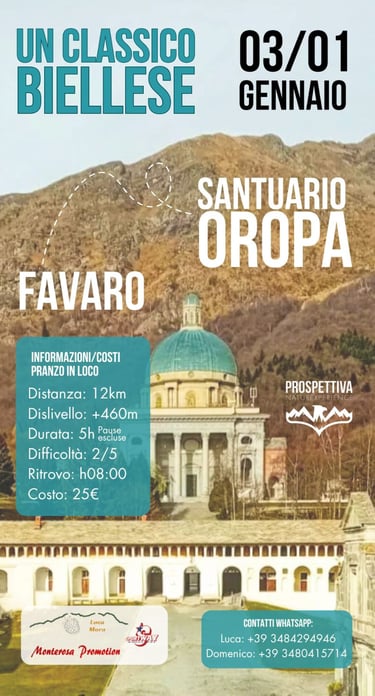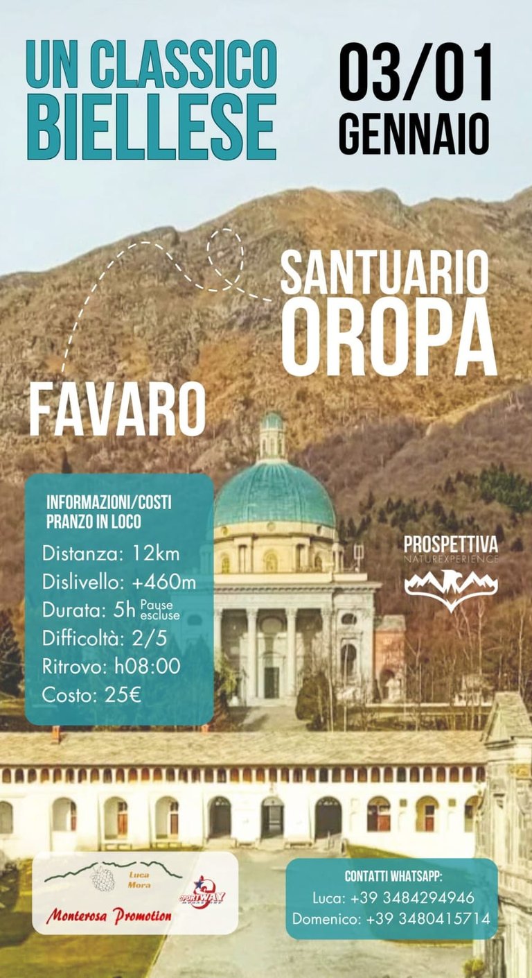 Durata: 7 ore (5 ore camminata A/R, 2 ore pranzo libero in loco e visita libera complesso di Oropa)
